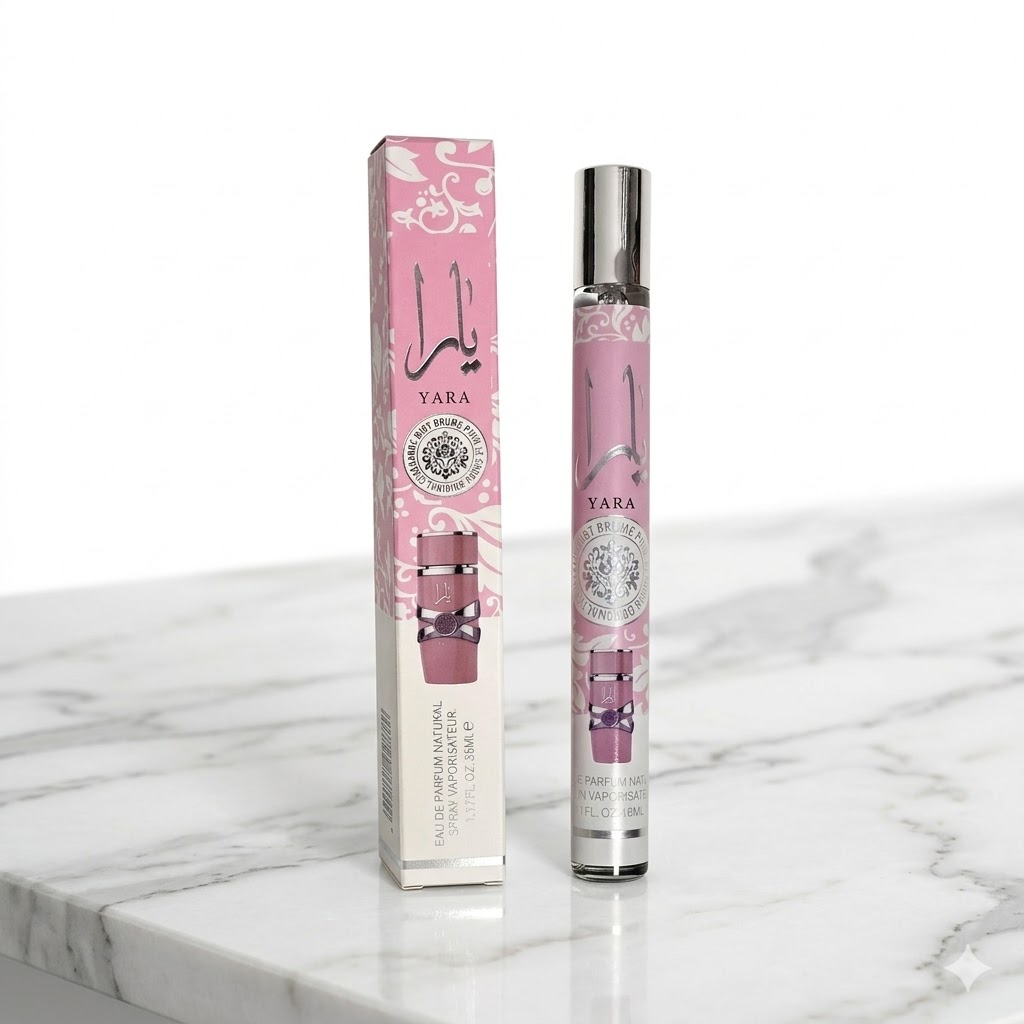 YARA 35 ml este o apa de parfum tip pix, fiind un dupe de inalta fidelitate inspirat de celebrul parfum arabesc de lux cu acelasi nume. Este un produs accesibil, creat pentru a oferi o aroma gurmanda si orientala intr-un format compact.